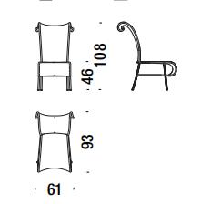Struttura in acciaio verniciato e fili colorati in polietilene intrecciati a mano. Sottopiedi in PVC.