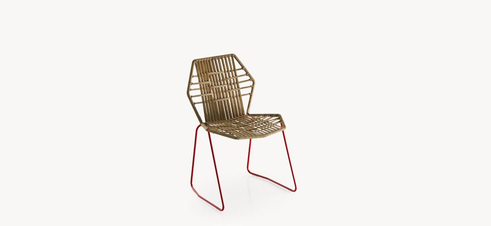La struttura in tubolare di acciaio del progetto Antibodi diventa la falsariga sulla quale la designer, attraverso un make-up creativo, traveste il telaio, lo trasforma, facendo assumere alle sedute personalità diverse a seconda del materiale utilizzato. Il giro di filo è simile a un colpo di matita, marca una superficie che è contemporaneamente grafica e strutturale, diventa gesto costruttivo e forma d’identità: giocoso con la plastica dei cordoncini lavorata a due o tre colori, raffinato se monocromatico, elegante con il cuoio.