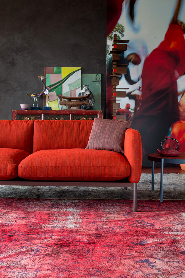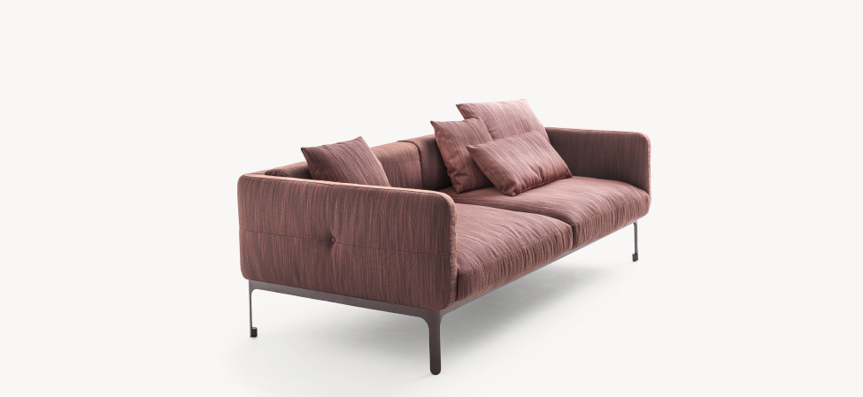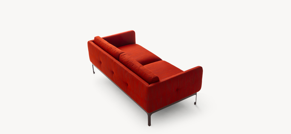 La collezione Modernista – pur avendo nel Modernismo radici e riferimenti – si distingue per l’ambizioso tentativo di integrare la componente figurativa, propria dei lavori di Nipa Doshi e Jonathan Levien, alla razionalità lineare della struttura geometrica del rettangolo. Il risultato, sotto il profilo dell’innovazione formale, è una conquista. Alla classicità della composizione, alla doverosa attenzione per la resa delle superfici e dei materiali, i due designer contrappongono l’accentuazione di pochi significativi particolari: il bottone centrale, nega e allo stesso tempo rielabora il fascino borghese della lavorazione capitonné, mentre la base modera l’estetica della lavorazione industriale, attualizzata nella scelta dei colori e nell’uso dell’acciaio tagliato al laser, piegato e saldato in una unica struttura. Con Casa modernista – velato omaggio a Gregori Warchavchik, architetto russo-ucraino riconosciuto per il ruolo di promotore dell’architettura moderna nel Brasile degli anni Venti – la precisione formale e la sobrietà oggettiva presente nei primi modelli si addolcisce verso una maggior apertura al relax e alla spontaneità.