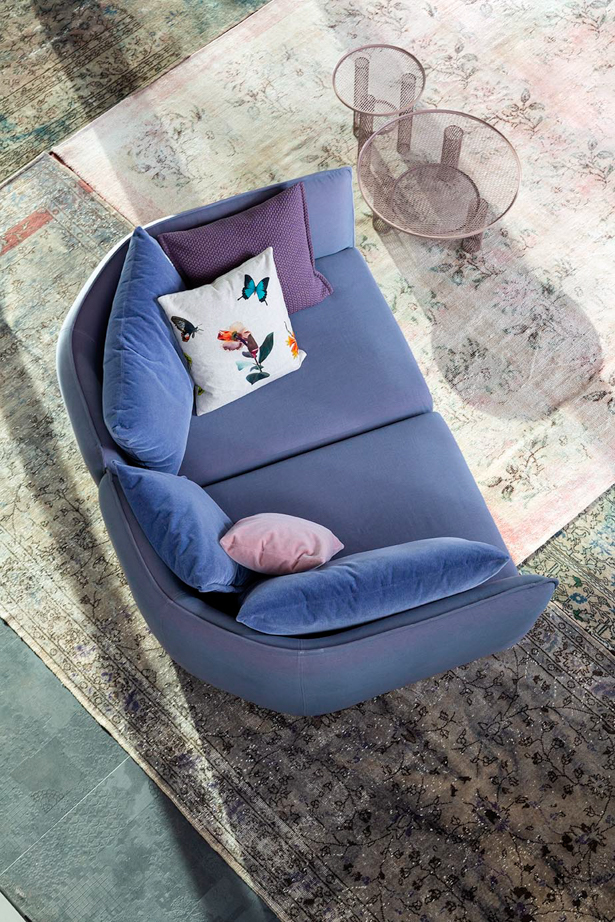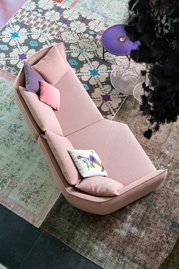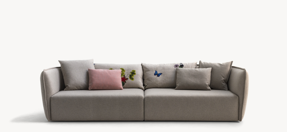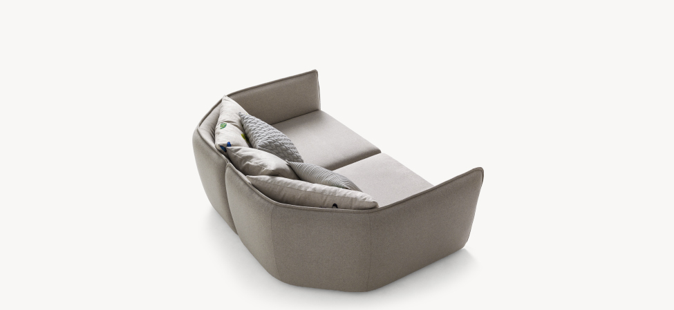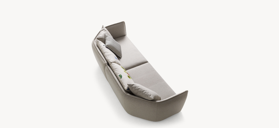 Il divano Chamfer celebra i vent’anni di collaborazione di Moroso con Patricia Urquiola: “Discutendo con Patrizia di questo anniversario, per i vent’anni di collaborazione, abbiamo deciso di lavorare su una semplificazione di una serie di echi derivanti da progetti fatti in passato, legandoci ad esempio a Redondo e altri divani che per noi rappresentavano una sorta di ‘culla’, di nido. Abbiamo abbassato, abbiamo geometrizzato, abbiamo portato a linee più pure, più pulite ed è venuto fuori questo spigolo, questo broken edge come dicono gli inglesi, questo Chamfer, una parola che ricorre in architettura dove, quando uniamo due linee in curva, le uniamo in chamfer.“ (Patricia Urquiola)