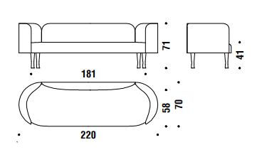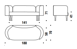 Poliuretano espanso ignifugo a densità differenziata e fibra poliestere con struttura interna in legno. Piedi in frassino verniciato. Sottopiedi in polietilene. La collezione Josephine non è sfoderabile.