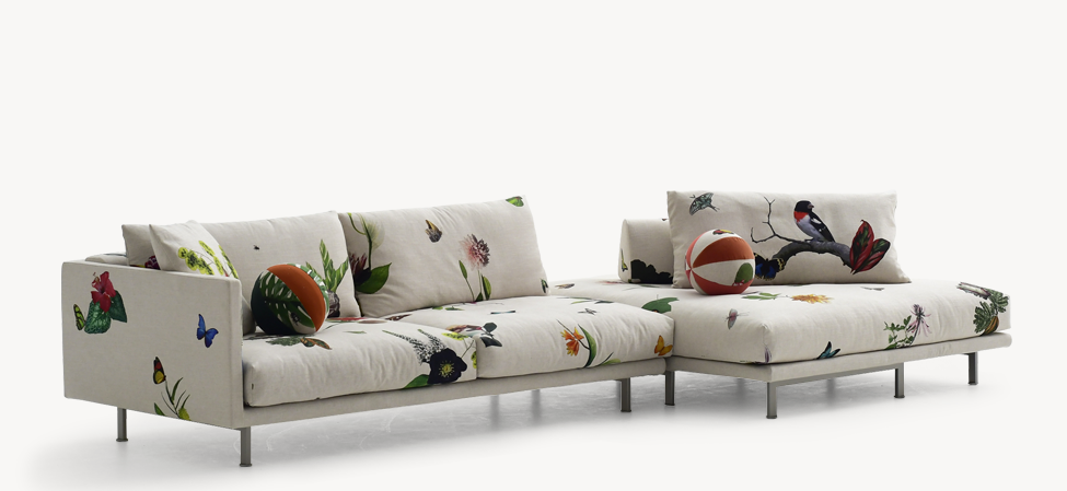 Questo sistema di sedute puó essere rivestito con vari tessuti, il cotone, il lino, uniti e stampe. sattamente come i famosi manichini degli ateliers di haute couture. Josh é stato ideato per essere vissuto ed essere un luogo dove passare la giornata. é il pezzo forte del salotto, il luogo dove tutto ha principio. Si trova a suo agio in un loft di cittá tanto quanto in una casa al mare grazie al tocco naturale del cotone, dalla trama cucitaci sopra che ricorda i tradizionali futon giapponesi e le ikebana stampate sul lino che sono un perfetto incontro tra il ruvido tessuto naturale e la tecnologia di stampa piú moderna.
