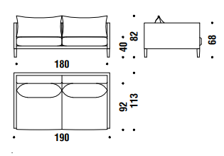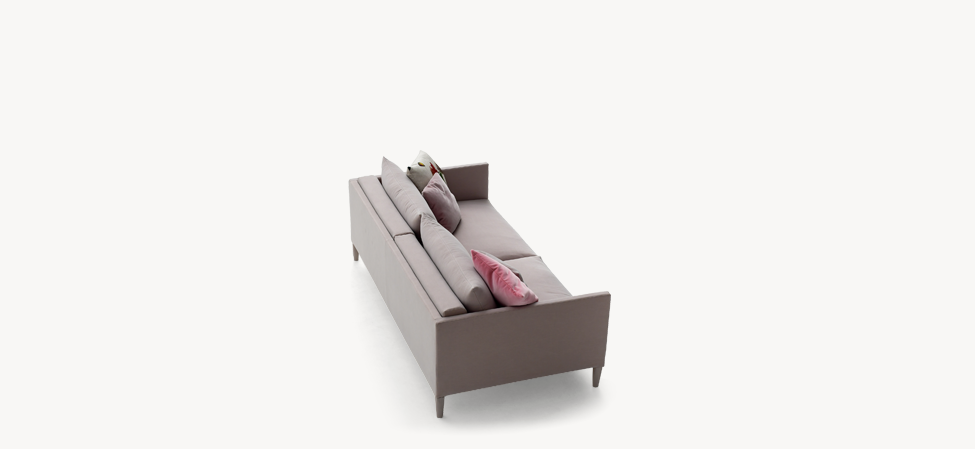Basi in poliuretano schiumato a freddo ignifugo e fibra poliestere con struttura interna in legno e acciaio. I cuscini di seduta sono in piuma d’oca con l’inserto in poliuretano espanso. I cuscini dello schienale, del bracciolo e quelli opzionali sono in piuma d’oca.