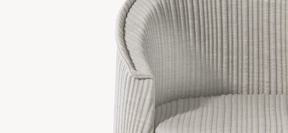 Espanso schiumato a freddo ignifugo con struttura interna in acciaio e legno, piedi in PVC. La collezione Husk non è sfoderabile.