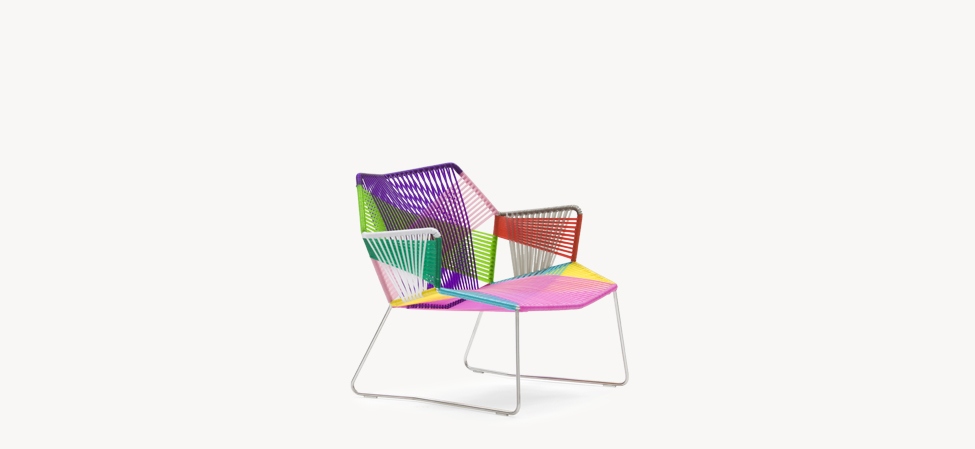 La struttura in tubolare di acciaio del progetto Antibodi diventa la falsariga sulla quale la designer, attraverso un make-up creativo, traveste il telaio, lo trasforma, facendo assumere alle sedute personalità diverse a seconda del materiale utilizzato. Il giro di filo è simile a un colpo di matita, marca una superficie che è contemporaneamente grafica e strutturale, diventa gesto costruttivo e forma d’identità: giocoso con la plastica dei cordoncini lavorata a due o tre colori, raffinato se monocromatico, elegante con il cuoio.