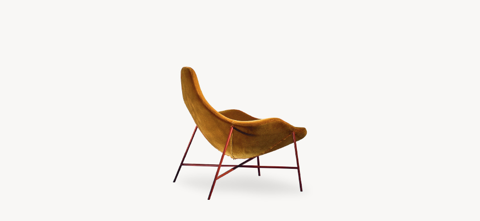 La ricerca parte dal telaio, dallo studio della qualità degli appoggi. è l’ergonomia a determinare la posizione di seduta, i due approcci complementari di concepire la comodità. Sostenere e accogliere. Nella sedia, poltroncina e poltrona la scocca imbottita poggia sulla base; nella poltrona e nella chaise longue il rivestimento è ancorato direttamente al telaio, una sacca che accoglie e seduce l’ospite. Il nome, citazione di un liquore caraibico a base di caffè e rhum, svela la doppia identità, l’allusione al gioco dei contrari. Postura formale e informale, simmetria e asimmetria dei braccioli, linearità e sinuosità del telaio. Ogni funzione è assolta: attesa, riposo, relax.