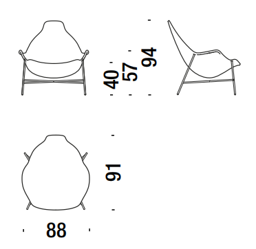 Seduta in pelle supportata da rete autoportante su struttura in metallo. Base in acciaio verniciato a polveri o cromato. Sottopiedi in polipropilene. Sottopiedi in polipropilene. La collezione Tia Maria non è sfoderabile.