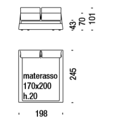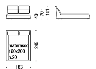 Testiera reclinabile e sponde del letto imbottite. Possono contenere solo materassi con misure standard europee. La collezione Highlands è sfoderabile.