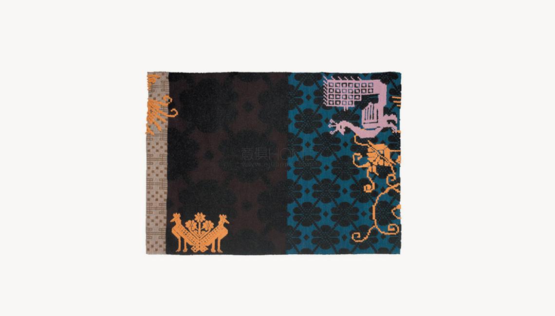 Collezione di tappeti in pura lana realizzati manualmente in Sardegna su antichi telai in legno con la tecnica locale dei “Pibiones”.
