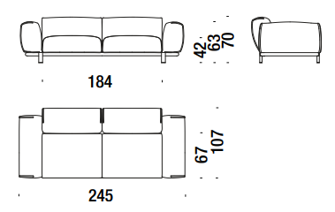 Espanso schiumato a freddo ignifugo e fibra poliestere con struttura interna in acciaio. Piedi in acciaio verniciato a polveri. Sottopiedi in polipropilene. I cuscini sono in poliuretano espanso a densità differenziate e fibra poliestere. La collezione Bold è sfoderabile.