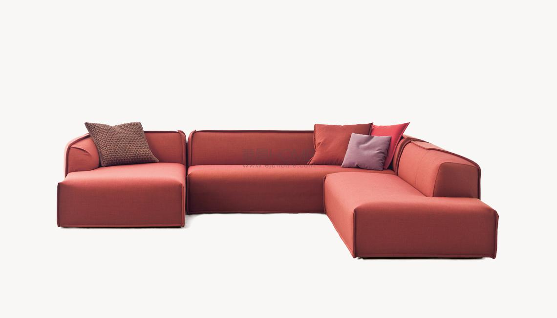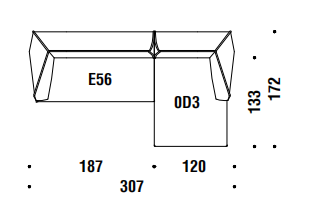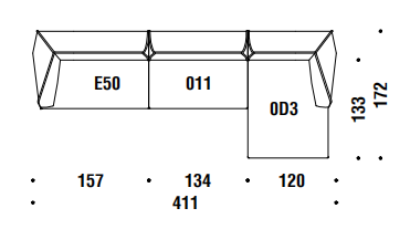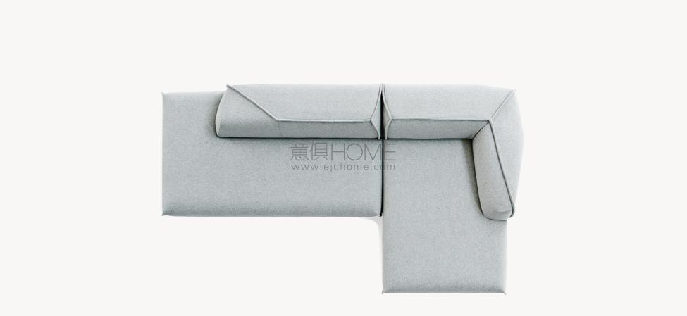 chi smussati dal taglio di una lama immaginaria. L’ordine geometrico è rotto, travolto a favore di un movimento, di un margine che attraversa i perimetri. Le facce rendono evidente la nervatura; alcune cuciture, evidenti come imbastiture, la disegnano, altre scompaiono. L’utilizzo è libero, la superficie morbida. La forma esterna, dal punto di vista dei volumi, appare indipendente dalla struttura e dall’imbottitura interna. Divano, poltrona, poltroncina: un sistema componibile dove ogni elemento mantiene indipendente il carattere, per funzione e presenza scultorea.