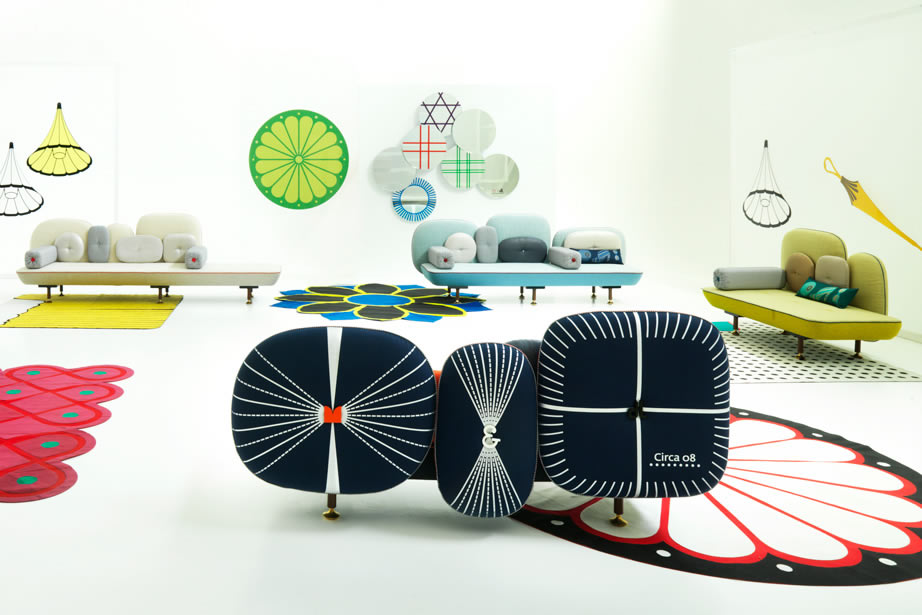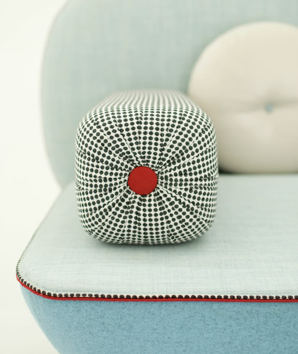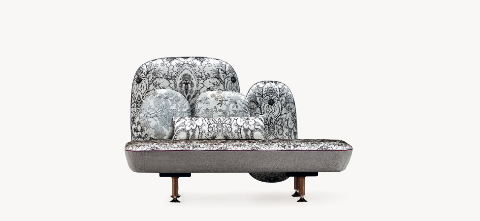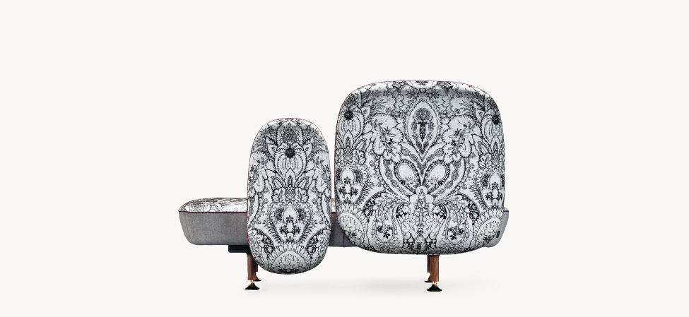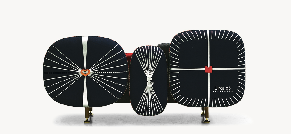 My Beautiful Backside è una collezione di sedute in cui gli schienali sono una composizione colorata con cuscini in varie forme. L’uso di simboli, quali pulsanti su spalle cuscino sono il modo di comunicare una serie di messaggi. Questi simboli forniscono anche un mezzo per la personalizzazione di ogni seduta, rendendola unica, proprio come in un capo di abbigliamento. Il materasso superiore è ricoperto da una composizione di oggetti diversi ispirati ad una principessa contemporanea e vengono ricamati in oro e argento.