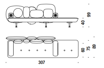 Sedili in poliuretano espanso indeformabile a densità differenziate e fibra poliestere con struttura interna in legno. Schienali in espanso schiumato a freddo ignifugo con struttura interna in acciaio. Piedi in noce naturale con sottopiedi in metallo ottonato. La collezione My Beautiful Backside non è sfoderabile.