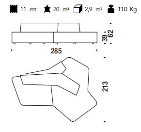 Elementi in poliuretano espanso ignifugo indeformabile a densità differenziate e fibra poliestere con struttura interna in legno. Piedi in polipropilene nero avvitati alla struttura. La collezione Rift non è sfoderabile.
