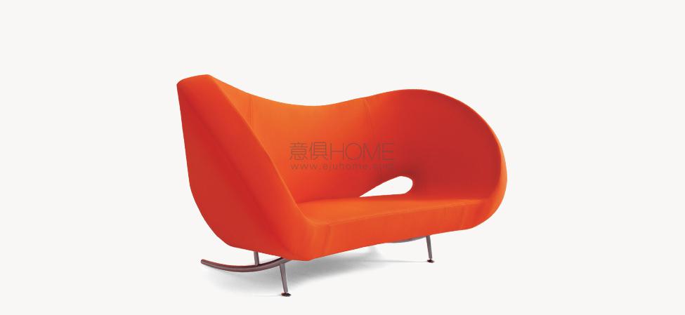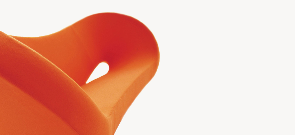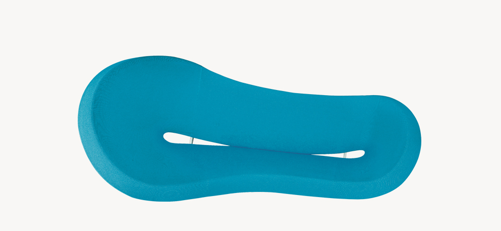 Linee curve in flusso continuo, figure-immagine disegnate in continuità, senza mai staccare la matita dal foglio. In origine un “donut”, che diventa idea per una scultura: schiacciata, rimodellata, un punto di vista ironico che supera l’approccio particolare del design industriale. Poi l’oggetto: sulla struttura interna, in vetro resina e fibra di vetro, un’imbottitura e poi un vestito cuciti su misura svelano la coincidenza tra il valore tecnico e quello espressivo del progetto Linee sensibili ma forti, mai interrotte, corrispondenza rigorosa tra superficie e forma, tra epidermide e corpo. Il tessuto invade lo spazio esaltando e potenziando la materia, senza sovrapporsi al flusso, senza interromperlo.