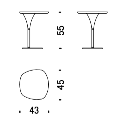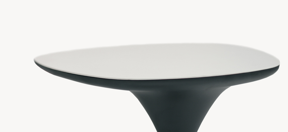 Base in acciaio verniciato bianco o nero, guscio in ABS stampato bianco o nero e piano in Laminam?. Il piano non è intercambiabile.