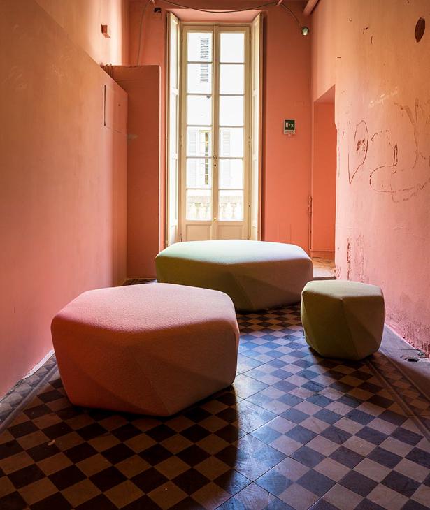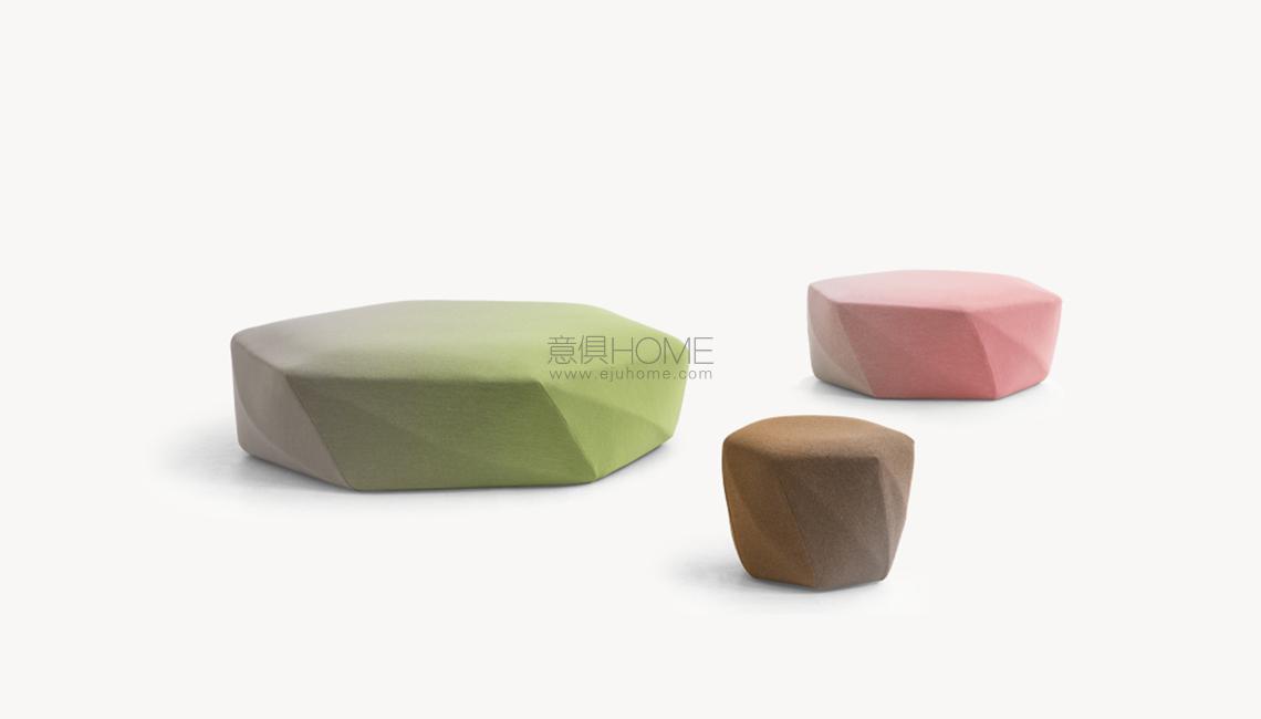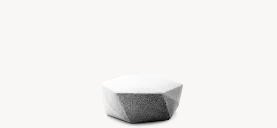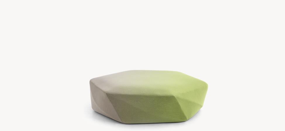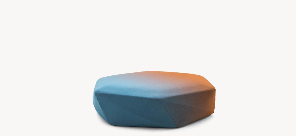 Disegnato originariamente per il nuovo flagship store di Issey Miyake, in Brook Street nel centro di Mayfair a Londra, Brook è un ottomano imbottito dal profilo sfaccettato dove i tagli, progettati in funzione del rivestimento tessile, evocano il ricordo delle pietre preziose. Nelle sedute, però, non c’è rifrazione, non c’è luce. Il nome, oltre a riferirsi all’indirizzo del negozio londinese, suggerisce l’immagine di un ruscello (brook) evocando l’idea di un sasso di fiume, modellato e sagomato dall’azione dell’acqua. Una raffinata simmetria derivata dalla contemplazione della natura, e dall’integrazione delle sue leggi nell’atto stesso del progetto.