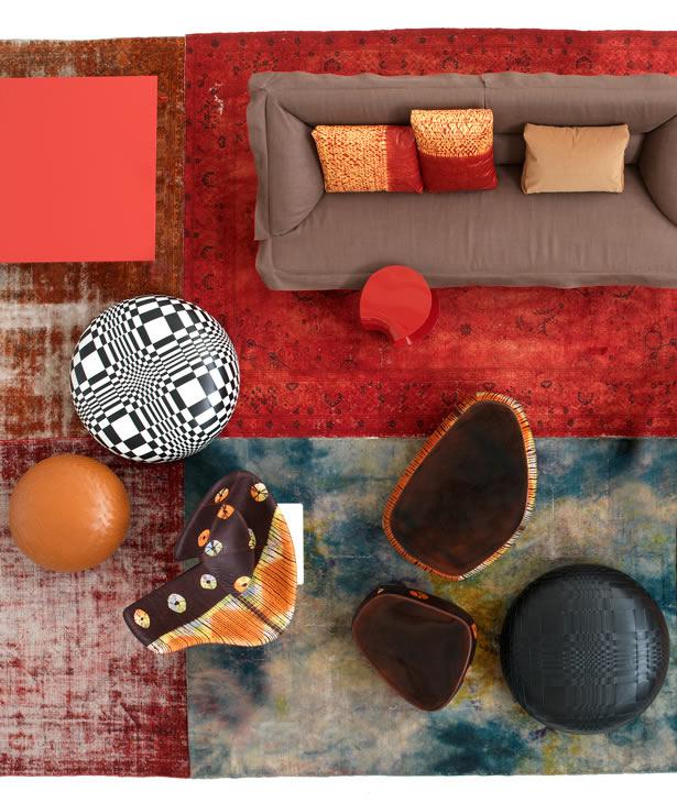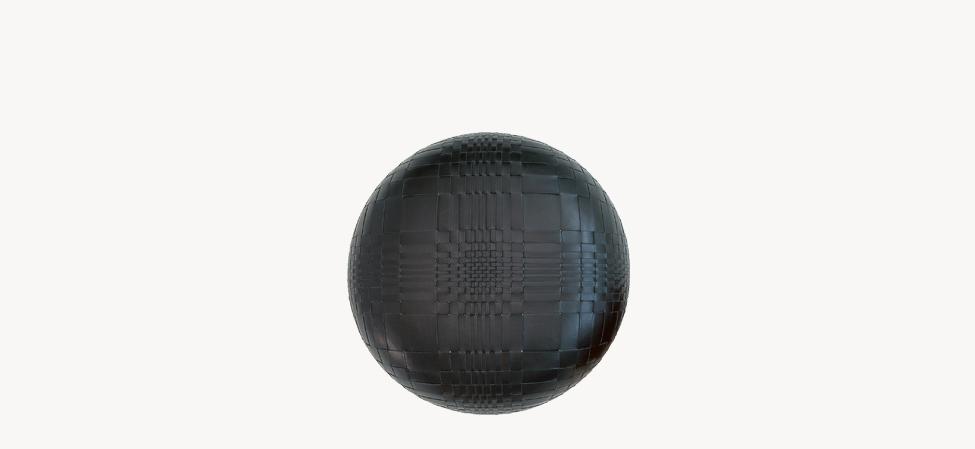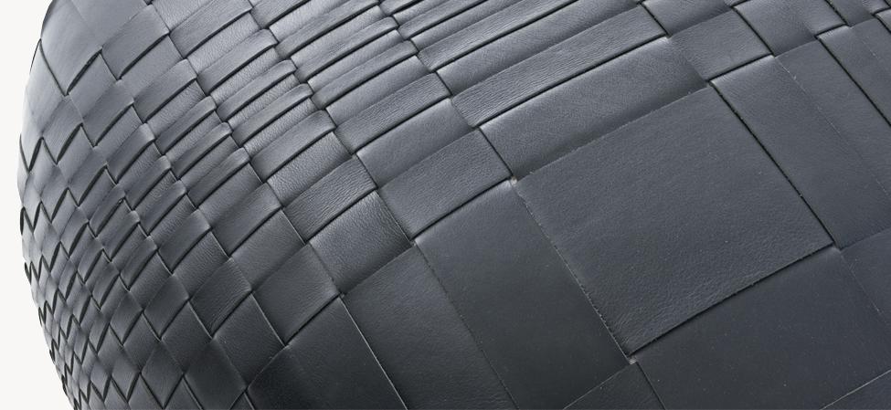 Un pouf rotondo come una goccia d’acqua, dove le linee della tensione superficiale si trasformano in un intreccio di strisce di pelle. Come per alcune opere optical degli anni ’50, Nendo studia i processi percettivi alla base del movimento, traducendoli in una disposizione di linee e forme geometriche organizzate secondo un preciso approccio matematico. L’effetto ottico, enfatizzato dai rapporti di estensione e dall’uso del bianco e nero, nella sua semplicità permette una lettura multipla dell’oggetto, allo stesso tempo strutturale e di superficie.