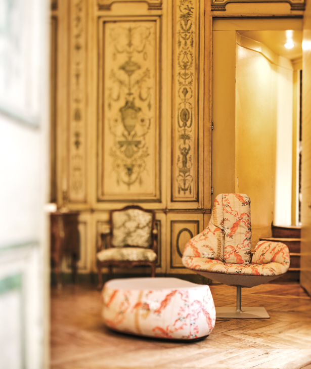 Da un frammento di conchiglia, rotto, levigato dalle onde, Patricia Urquiola disegna una collezione di sedute pensate per la casa e per gli spazi pubblici. L’influenza scandinava, evocata dal nome stesso, è nel riferimento ad Arne Jacobsen e nella presenza di un taglio allungato, metafora delle insenature delle coste nordiche. Come in un ciclo naturale la scocca della poltrona, ri-generata dal tempo e dall’acqua, diventa poltroncina e poi ancora sgabello. La forma spezzata, da concetto astratto, si trasforma in oggetto di design: linee dolci che sostengono e accolgono, evidenziate dall’accuratezza delle cuciture a vista in armonia continua con l’essenzialità della struttura.