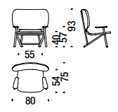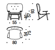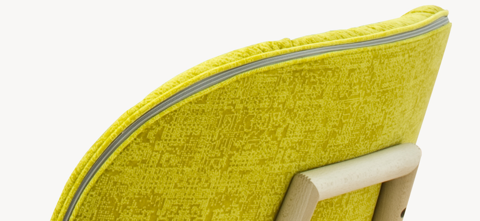 Struttura in faggio o in rovere. Seduta e schienale in multistrato curvato rivestito in poliuretano espanso ignifugo.