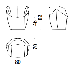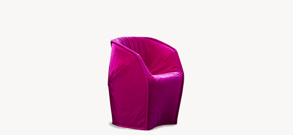 Blocchi smussati dal taglio di una lama immaginaria. L’ordine geometrico è rotto, travolto a favore di un movimento, di un margine che attraversa i perimetri. Le facce rendono evidente la nervatura; alcune cuciture, evidenti come imbastiture, la disegnano, altre scompaiono. L’utilizzo è libero, la superficie morbida. La forma esterna, dal punto di vista dei volumi, appare indipendente dalla struttura e dall’imbottitura interna. Divano, poltrona, poltroncina: un sistema componibile dove ogni elemento mantiene indipendente il carattere, per funzione e presenza scultorea.