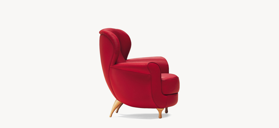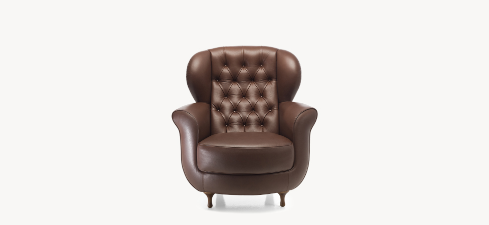 Elementi in poliuretano espanso indeformabile a densità differenziate e fibra poliestere con struttura interna in legno. Piedi in faggio verniciato avvitati alla struttura, ad eccezione dei piedi posteriori che sono fissati alla struttura. I cuscini della seduta, non reversibili, sono in poliuretano espanso a densità differenziate e fibra poliestere. I cuscini dello schienale sono in piuma d’oca. La collezione Big Mama è sfoderabile, ad eccezione delle poltrone Papy e delle versioni in pelle.