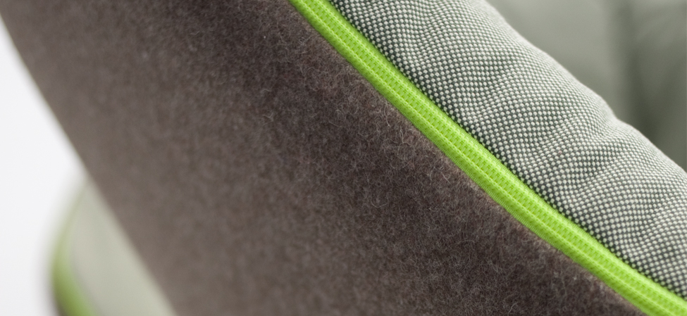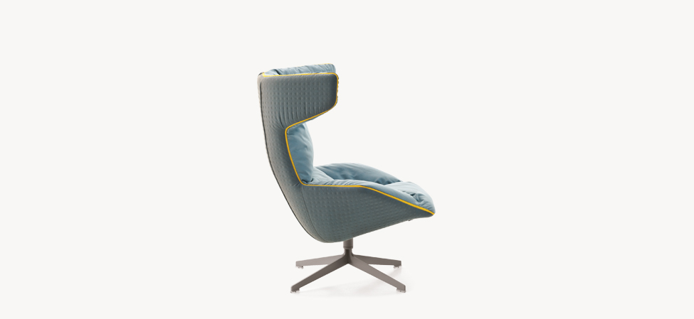 Macchine, astronavi, poltrone di comando, un universo di riferimenti maschili, legami emotivi che rievocano stupori e ricordi dei giochi d’infanzia. Un guscio avvolgente, comodo e protettivo, per appoggiare il capo, riposare o isolarsi dall’ambiente circostante. Disegnata nel 2002, la poltrona mantiene inalterata l’innata forza comunicativa. La novità, dieci anni dopo, è nell’imbottitura, nella zip che corre lungo il profilo separando l’esterno con l’interno. Fuori, rigoroso ordine geometrico; dentro, morbidezza e colori vivaci, concessione all’esuberanza tutta femminile.