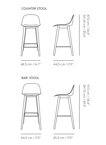 With an expression that is at once comfortable and harmonious, the Fiber Bar Stool is a design with an unobtrusive yet distinct identity. With its shell made in an innovative composite of plastic and wood fibers, the Fiber Bar Stool has a textured, matte surface and soft, inviting touch, paired with its embracing seat. Designed in two different heights, both available with or without backrest, the Fiber Bar Stool encapsulates the ideals of simply modern design with a human touch. When viewed from afar, the wood fibers of its shell blend into the surface for a matte finish yet appear when viewed up-close for a modern sentiment, joined by a wooden base.