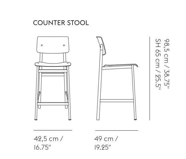 Loft Bar Stool combines Scandinavian design traditions with industrial references for a bar stool with full seat and back along with a small footprint. As with its chair counterpart, the Loft Bar Stool exemplifies simple, honest design through its clean lines and maximum comfort.