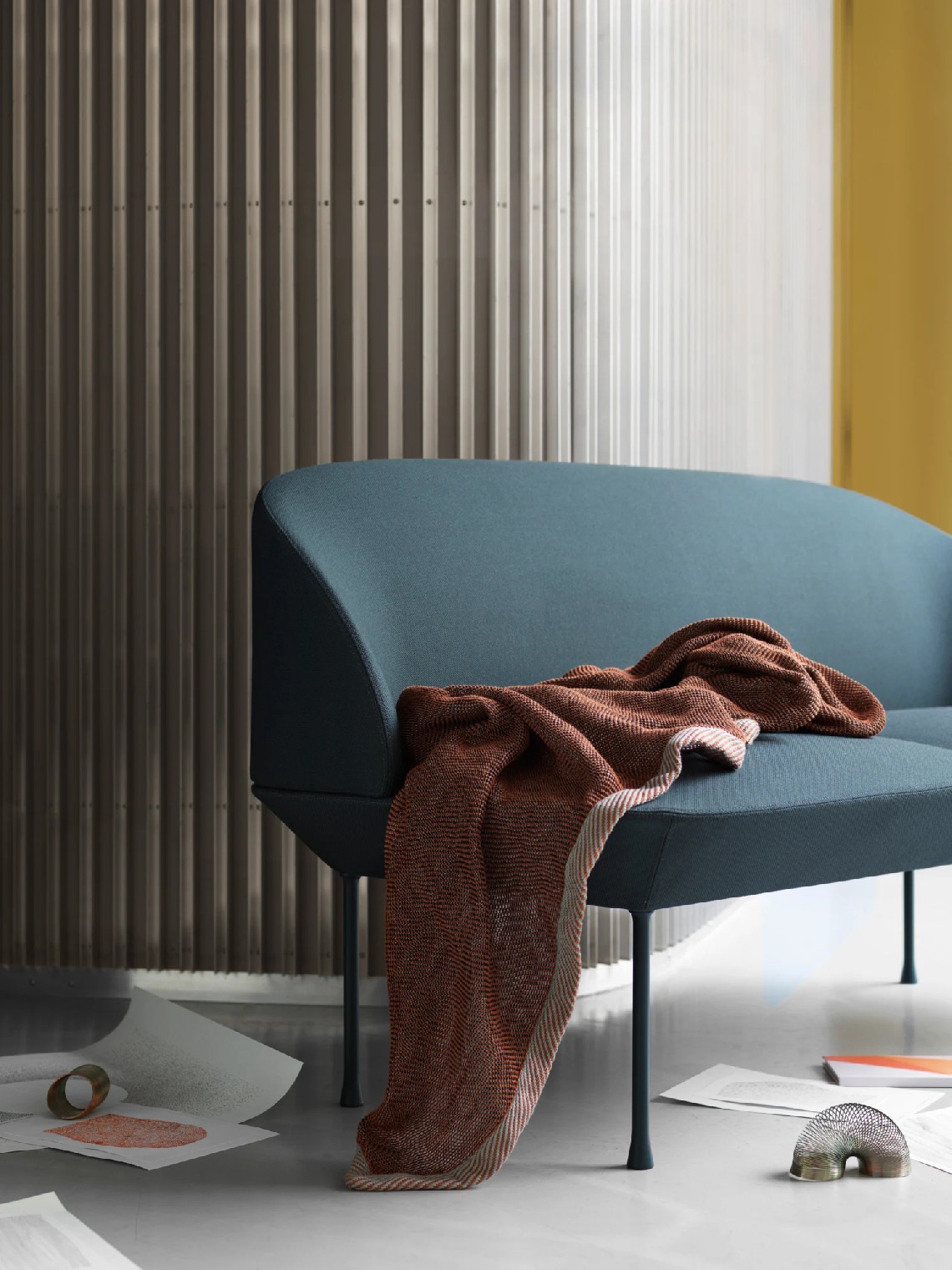 The Oslo Sofa is designed with sculptural, geometric lines for a sophisticated expression, paired with its soft seat and enveloping back. With its playful lines, the design brings elegant comfort to any lounging setting.
