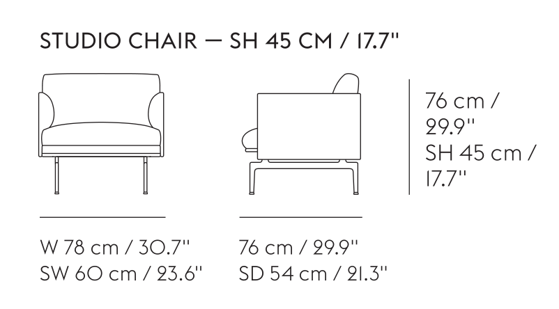 The Outline Series adds new perspectives to the classic Scandinavian design sofas of the 1960's, marrying the ideals of simplicity and function into one. With the design taking its name from its strong outline of a sofa, the Outline Series is clean and elegant on the outside with a deep seat and soft cushioning on its inside. The Outline Series has an expression that is at once elegant yet timeless, elevated by its lines referencing architectural shapes alongside its curved armrests, giving the design a distinct appearance across various sizes and variants. The Outline Series also includes Studio versions of the Sofa and Chair, being compact versions with slimmed-down proportions for smaller spaces within the home, hotel rooms, work settings and more. The Outline Studio Sofa and Chair have a smaller depth of 76 cm / 29.9”.