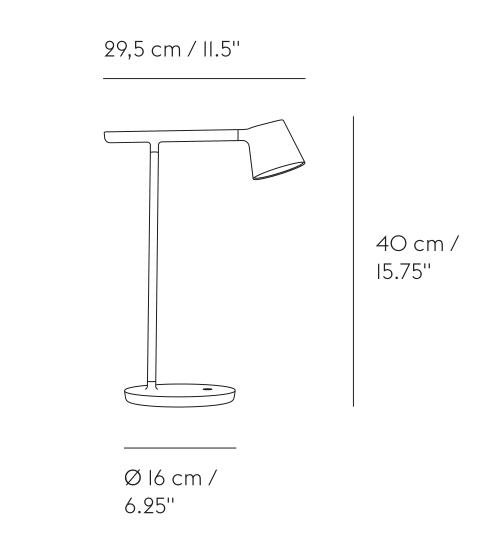 Created from the idea of stripping a design down to its essentials, the Tip Table Lamp is an example of simple, functional design with careful attention to detail. Offering direct as well as ambient light, the lamp's adjustable head and arm feature an opal diffuser and dimmer function that effortlessly alters the volume of light.