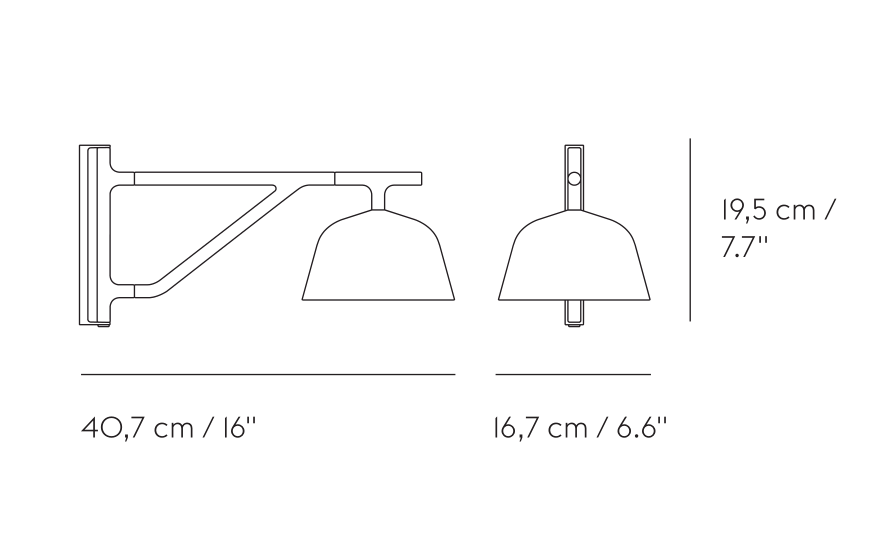 The Ambit Wall Lamp is designed with a quiet, modern expression and subtle details. Alter the expression of the Ambit Wall Lamp to your personal need through its rotating arm and head, bringing a refined light to any bedroom, kitchen or hallway. The arm of the Ambit Wall Lamp can be adjusted around an axis of 120 degrees from the wall bracket. The lampshade of the Ambit Wall Lamp can be turned 60 degrees to either side, allowing for the user to choose between direct as well as indirect light.
