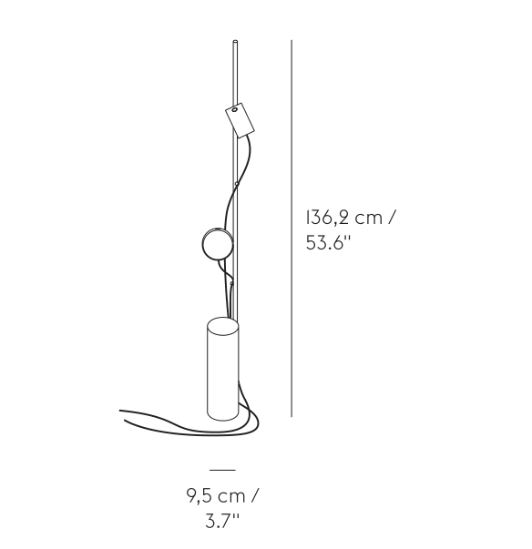 The Post Floor Lamp is an innovative modular lighting design with an archetypal appearance, graphic lines and forward-thinking functionalities. Exploring the utmost flexibility of a magnetic joint, the individual lighting units of the design can be positioned, turned and dimmed up and down to individual needs. Use the magnetic cable drops to position the cords on the rod. The Post Floor Lamp comes with two lighting units. An additional lighting unit can be purchased as spare part and added to the design by plugging it into the power hub and positioning it on the rod.