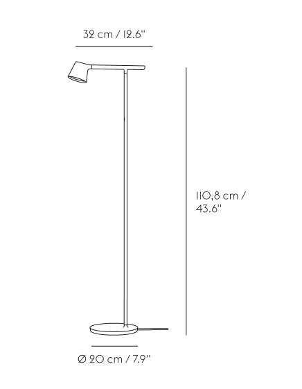 Created from the idea of stripping a design down to its essentials, the Tip Floor Lamp is a simple, functional design that brings careful attention to the subtlety of details. Offering direct as well as ambient light, the lamp's adjustable head and arm feature an opal diffuser and dimmer function that effortlessly alters the volume of light.