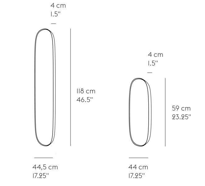 Made from powder coated steel frames with colored mirror glass, the Framed Mirrors is a gently artistic interpretation of the classic mirror. Though still functioning as reflecting glass, the colors, shapes and its ability to be arranged in groups gives the mirror a distinct character. The design comes in two sizes and four colors.