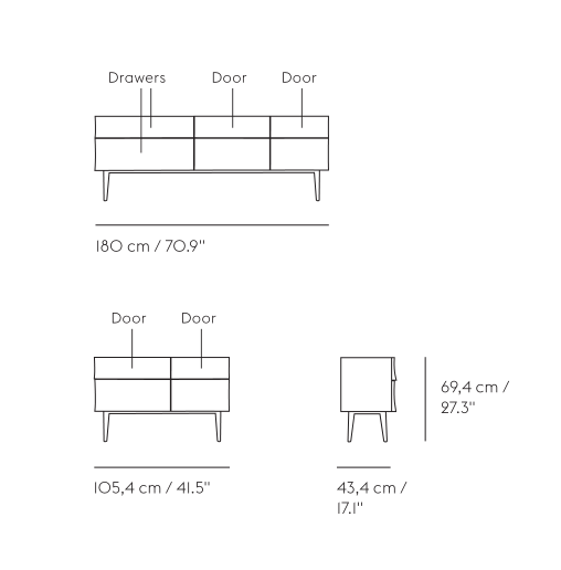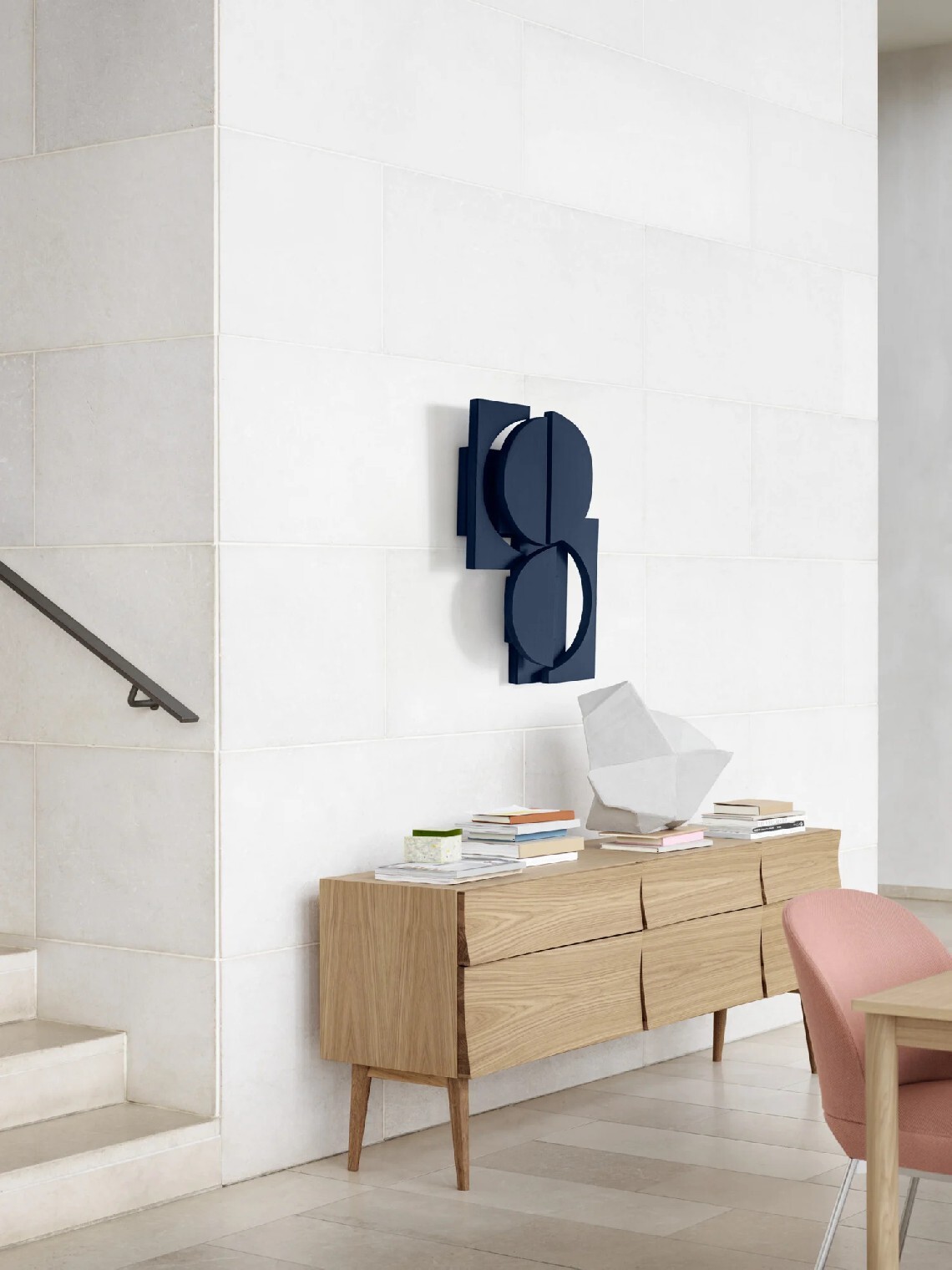 The Reflect Sideboard is a storage unit with a considerable length that works in both a living room and larger office spaces. With a curved surface in a sturdy frame, the Reflect Sideboard is a modern take on the classic mid-century modern Scandinavian style.