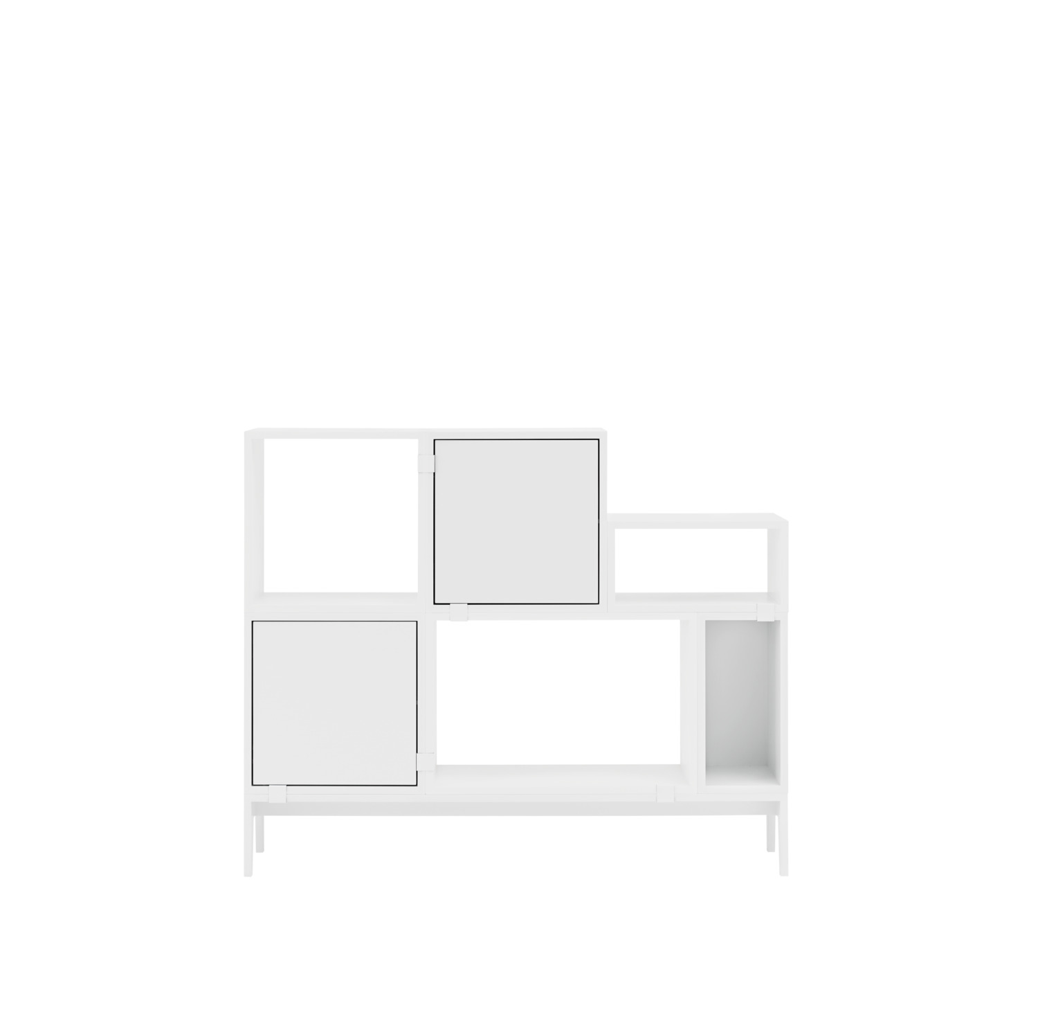 Being both versatile and functional, the Stacked Storage System can be arranged and rearranged for the exact aesthetic and functional needs of any space. Seen here is a selection of predesigned sideboard configurations that bring modern storage to any home, workplace or hospitality setting. All modules with backboard can be mounted directly onto the wall.