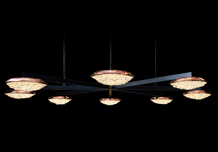 通過對稱和和諧的發揮,我們創造了 Origo Star——水晶吊燈的現代設計。這是一個宏偉的照明創作,以其優雅精致的設計完善了空間。結合兩種可用尺寸,打造最適合您室內裝飾的燈具。像所有 Manooi 的水晶燈一樣,它可根據要求定制。