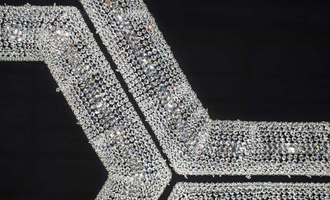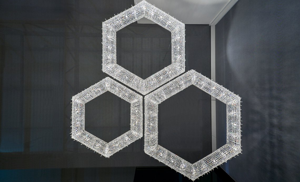 SU 獨有的六邊形是一盞迷人的現代吊燈,它將營造出復雜的幾何燈光,并為現代室內帶來奢華的觸感。我們的 SU 模型能夠塑造空間并以其自然和現代的氛圍對其進行補充。您可以選擇標準尺寸的透明或彩色水晶組合。