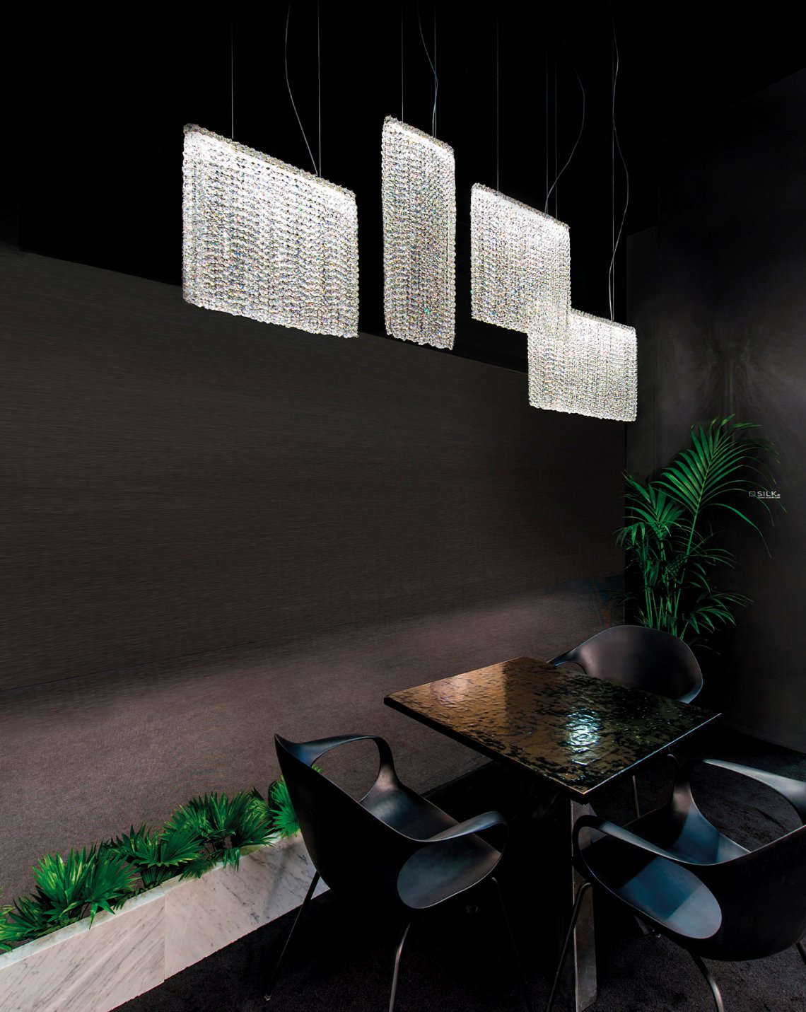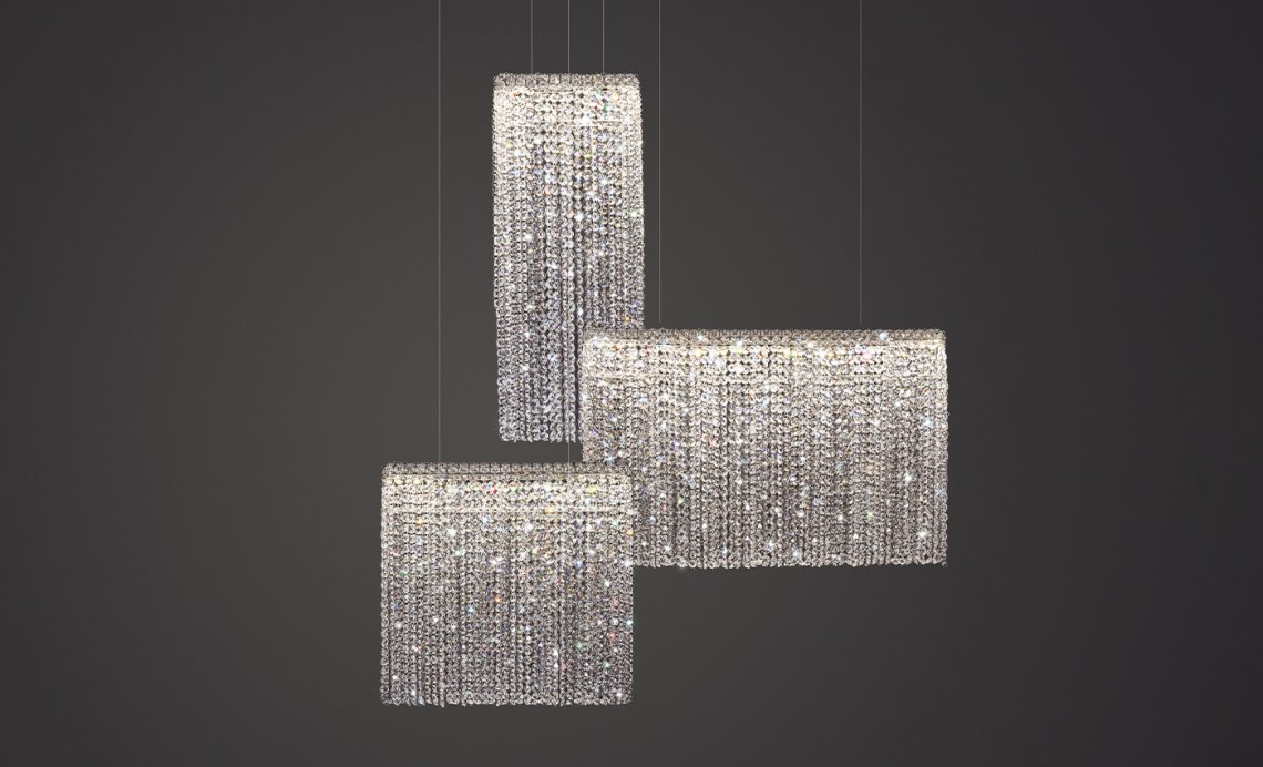 SILK 代表物質流動的輕盈——光滑、精致到最細微的細節和絕對令人驚嘆的現代吊燈。這個獨特的模型通過包含簡單但迷人的現代幾何形狀重新定義了水晶照明的概念。大堂、客廳或餐桌上方的完美選擇,您可以選擇標準尺寸或根據您的需要的透明或彩色水晶組合。