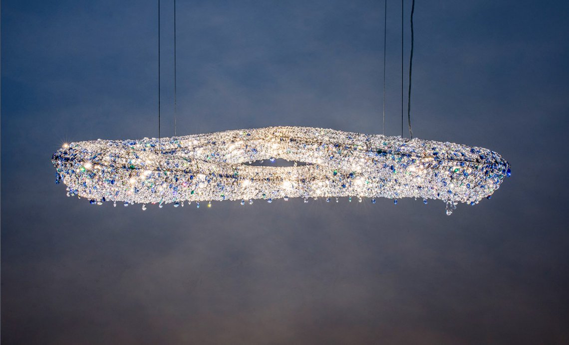 INFINITY 水晶吊燈以其永無(wú)止境的循環(huán)喚醒了永恒的力量。這盞現(xiàn)代吊燈象征著權(quán)力和永恒的美麗。它為任何環(huán)境提供了一個(gè)有趣和動(dòng)態(tài)的照明概念。這款專屬吊燈的造型將為您的室內(nèi)設(shè)計(jì)項(xiàng)目帶來(lái)藝術(shù)氣息。