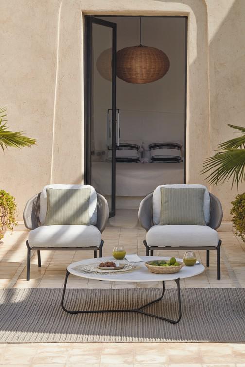 Mood chairs designed by Stephane De Winter and Mood coffee- and loungetables designed by Gerd Couckhuyt. Mood is a lightweight and durable collection of resin wicker furniture. Designed with translucence in mind, the chairs are available as high or low units. This collection also includes side tables in different sizes and finishes.