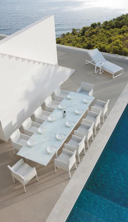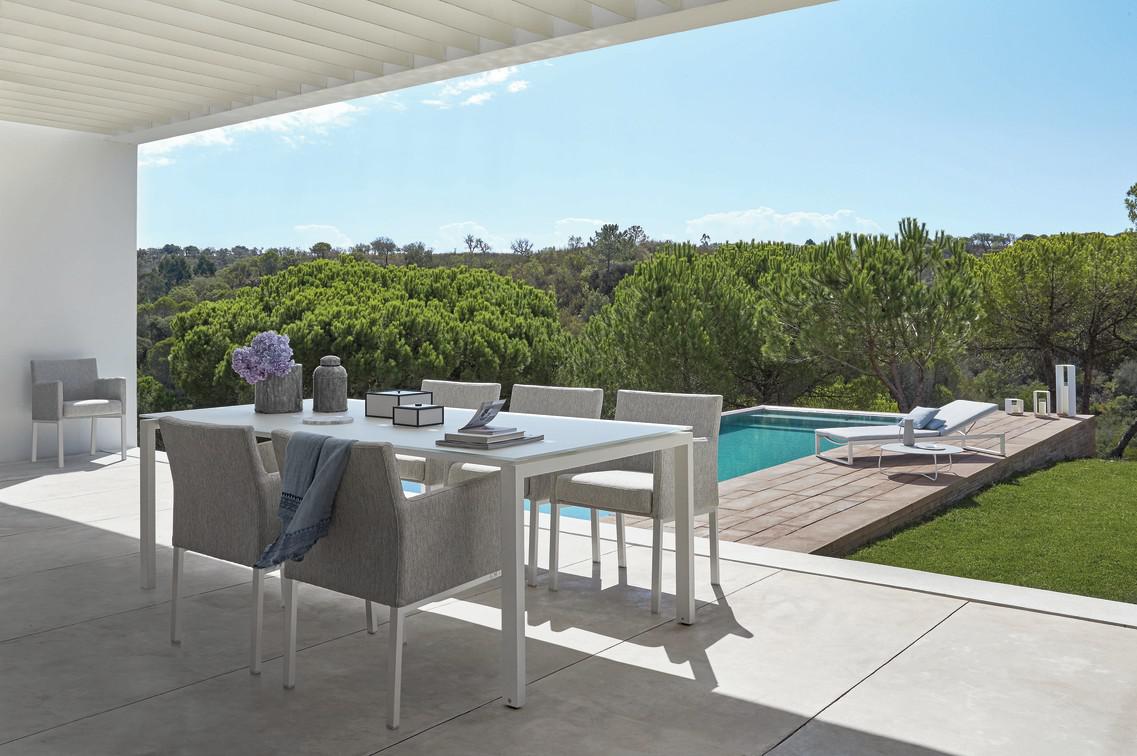 Thanks to its powder-coated aluminium frame, Liner is a winning lightweight. Whether placed on a terrace or in a lounge or spa, these highly functional chairs and loungers stand out because of their timeless design. The contemporary collection showcases the elegant muted colours of the fabrics with topstitching in matching shades. Liner pieces are available in several complementary designs.