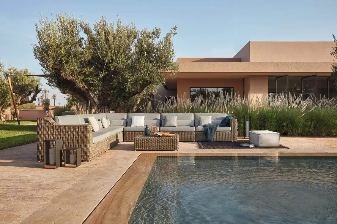 The San Diego collection of tables, chairs, sofas and accessories combines strong water-repellent fabrics and synthetic aged rattan cane work. Designed with a stark, minimalistic eye to detail, each piece also includes the softer, organic appeal of wicker. Natural materials and tones add to the collection’s ageless appeal.