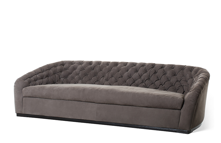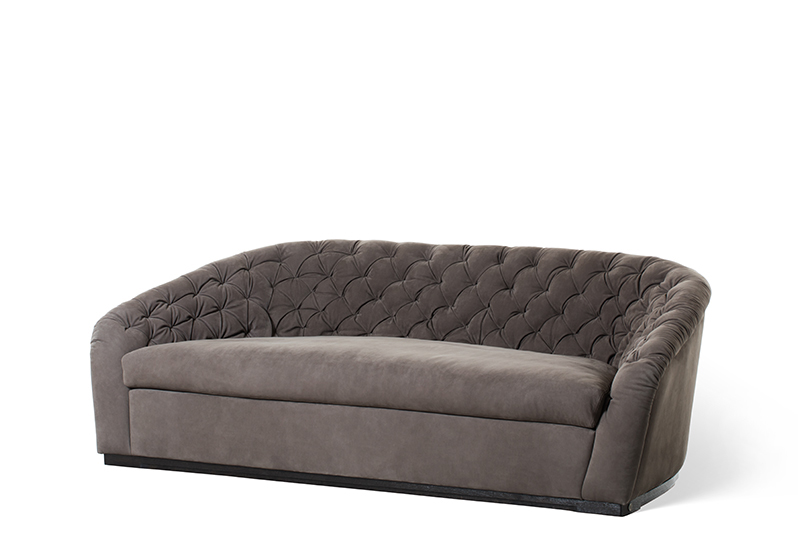 Poltrona imbottita con rivestimento in tessuto o pelle.