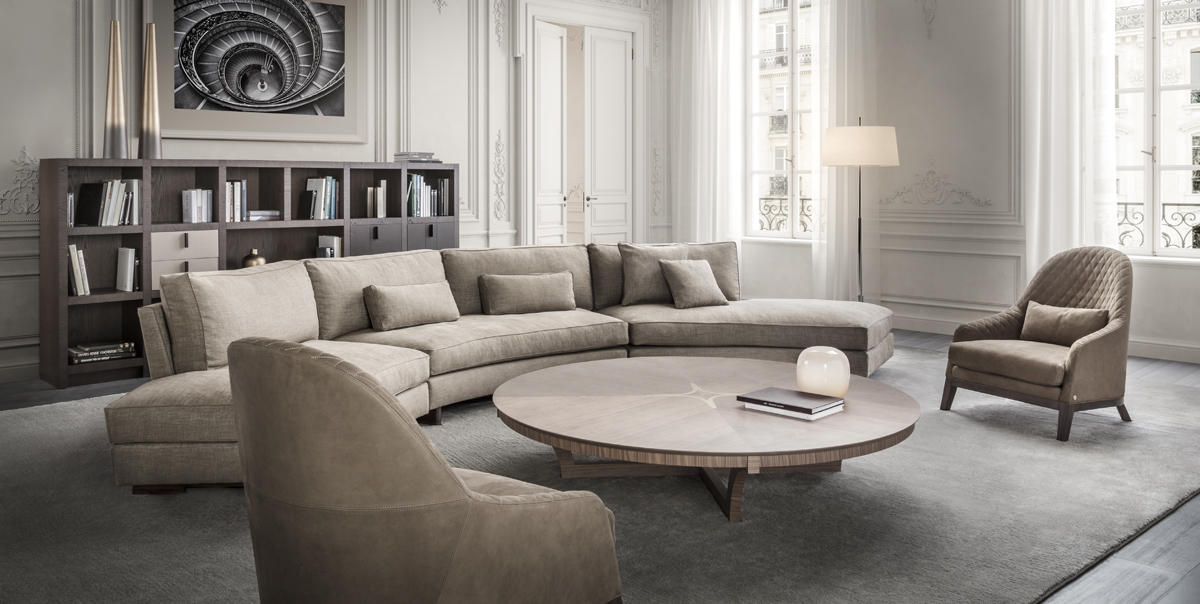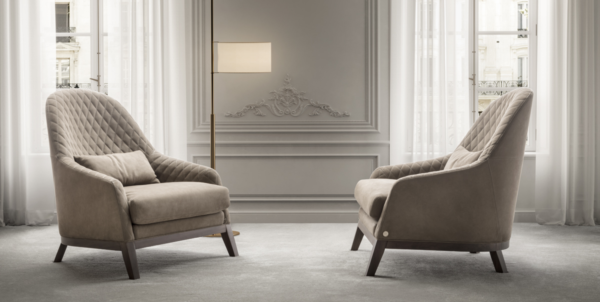 Bergere with wood structure. Covered with fabric or leather.