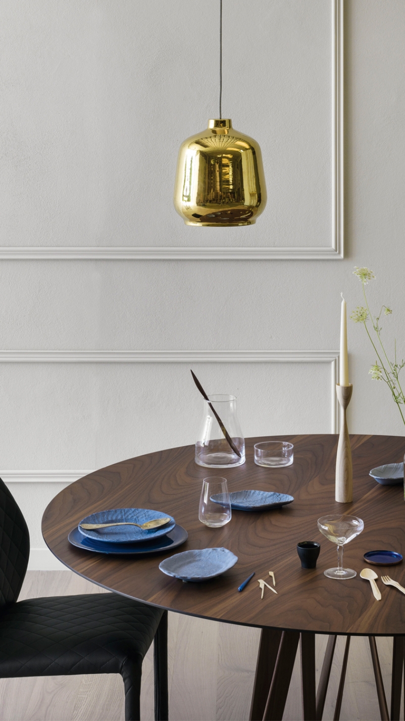Acco is an elegant dining table with a strong character that resists labelling. It displays a mature, sophisticated language, which is developed through the design of the base frame with its distinct regular pattern of wooden lines.