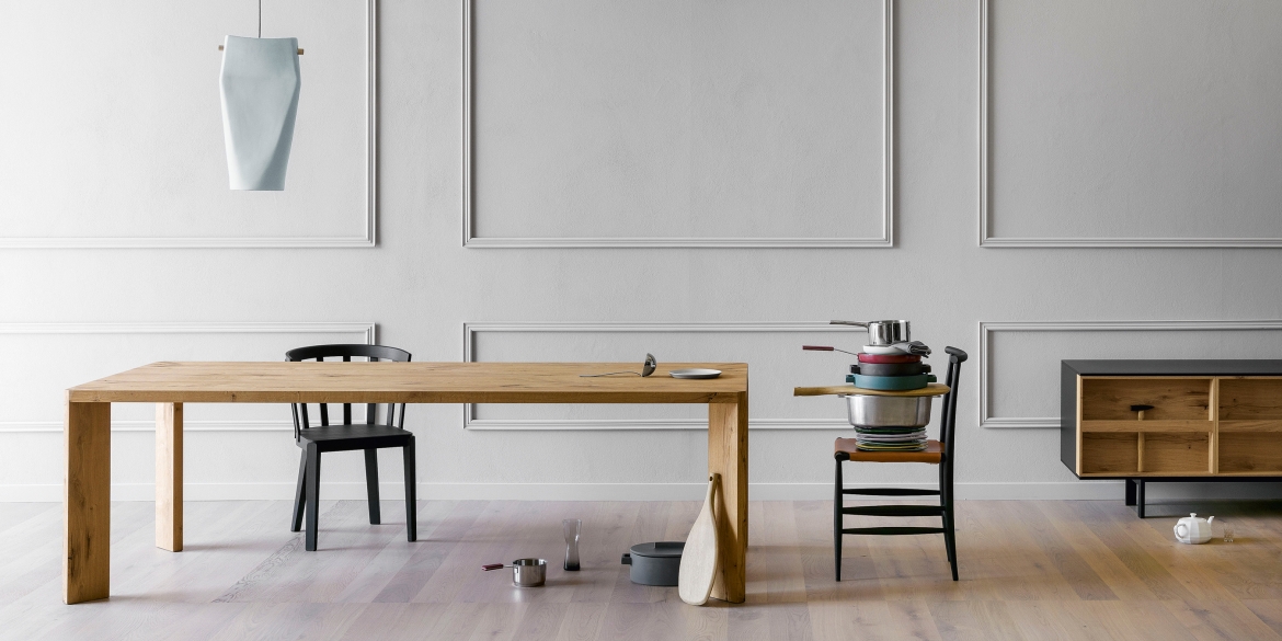 Manero is a contemporary looking table yet has a strong association with traditional fine quality joinery. Its primitive character focuses our attention on the expressive nature of the wood. An assertive table with no frills.