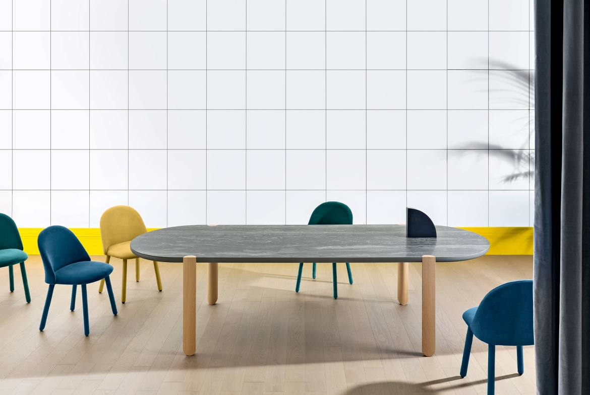 We like to think that Ovo comes from some Warner Bros cartoon, both due to its curiosity and to its irresistible humour. This young, cute table plays with shapes and materials, forming a sweet semicircle where the leg meets the top. Ovo can take its likeable nature anywhere, from the home to the office, making spaces more creative and stimulating.